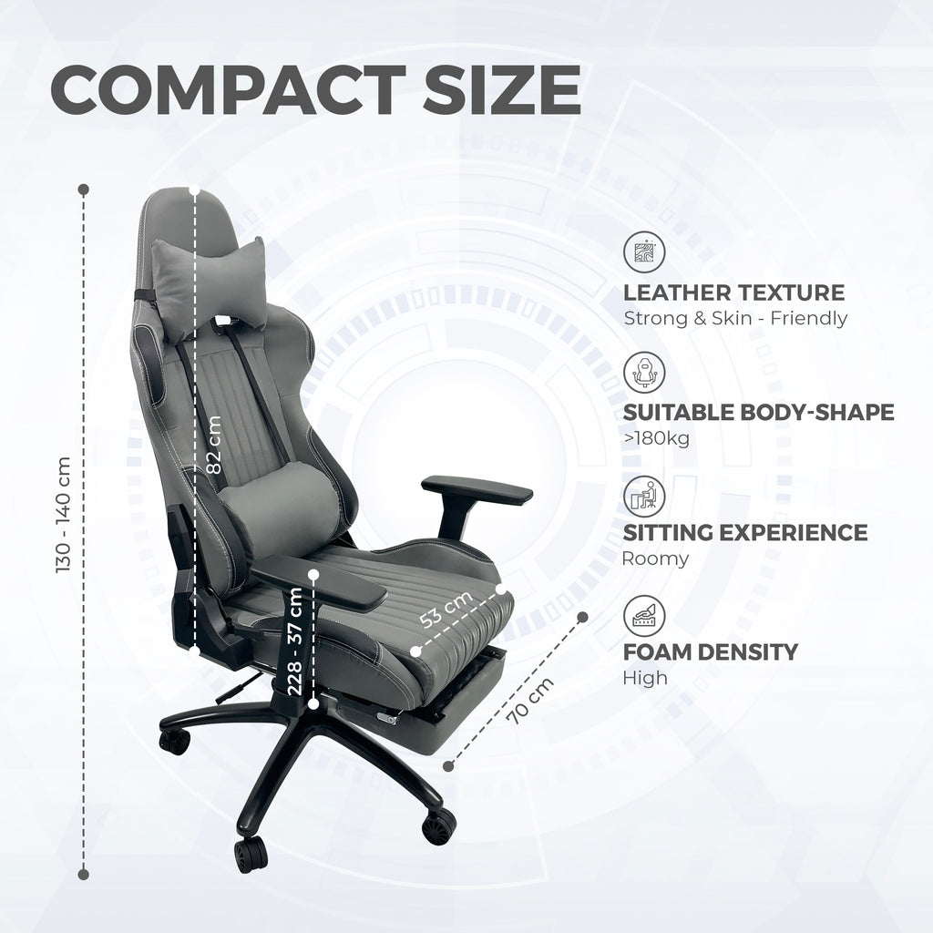 【Dimensions】Office Chair with Footrest comes in generous dimensions of Adjustable Height between 130-140cm, Backrest Height 82cm, Height from Floor to seat 50-60cm, Seat length 50cm, Seat Width 53cm, Amrest to Armrest 70cm, Seat thickness of 120mm, footrest 36cmx20cm.