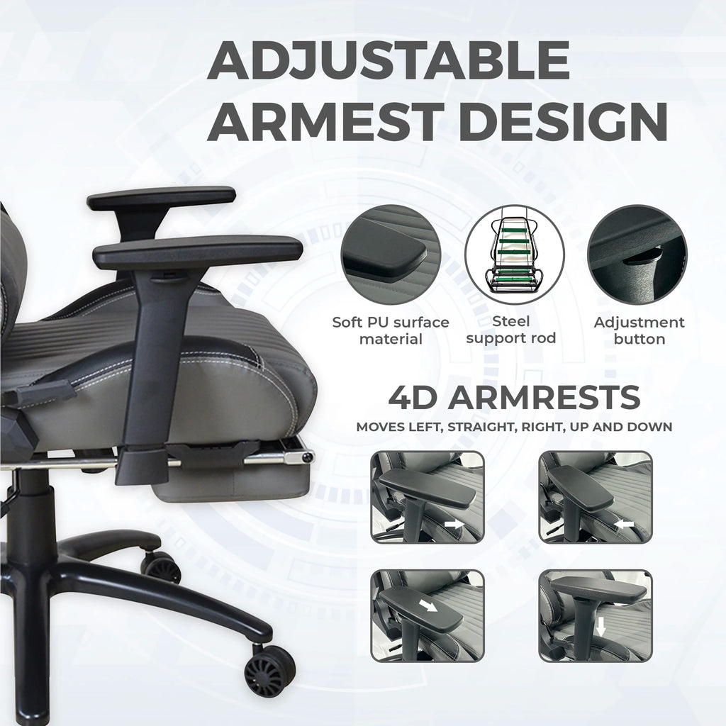 【Height Adjustable & 4D Armrest】Computer Home Office Chair is comes in full ability to and suspend or descend the office chair with the aid of SGS certified 100mm gas lift piston making it easy to adjust the chair either up or down in an additional generous height of 100mm. The 4D Armrests is able to move up or down, left, front or right making it easier for a perfect comfortable sitting.