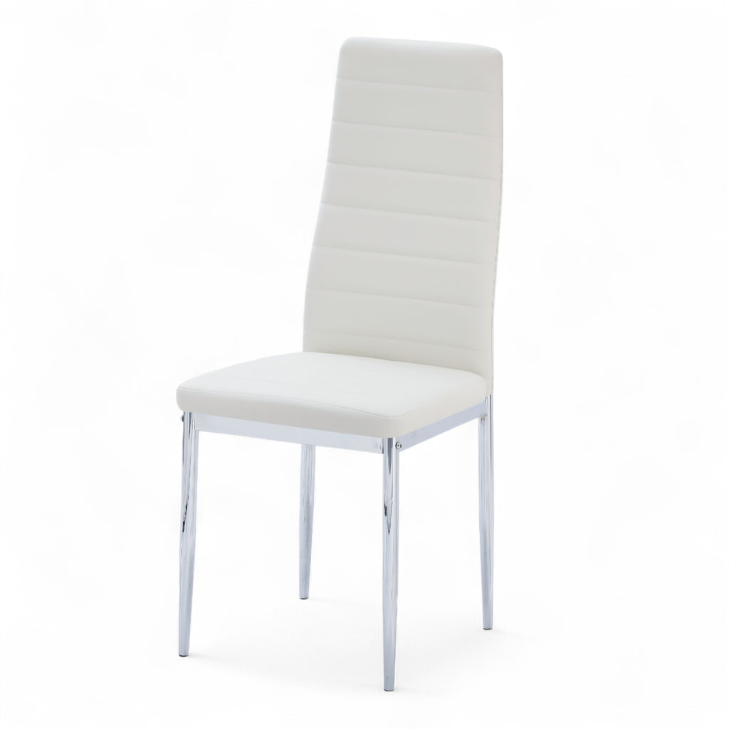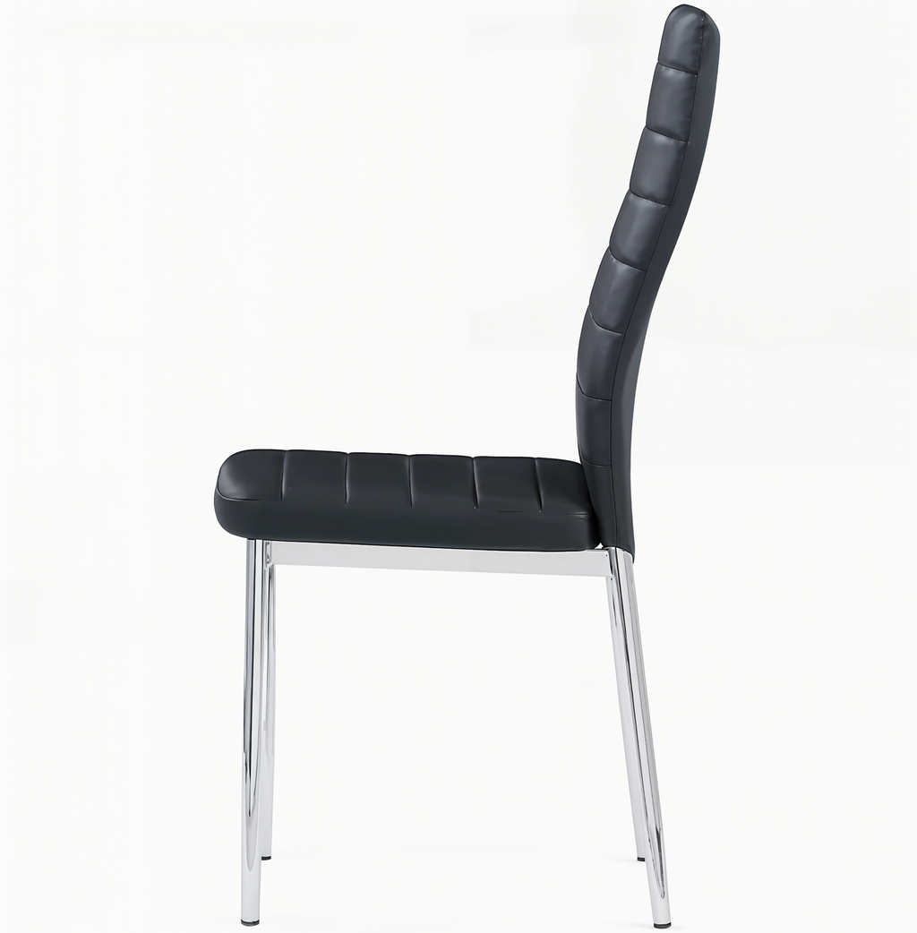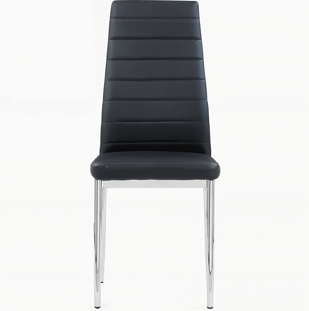 - FAUX LEATHER DINING CHAIRS – STYLISH & COMFORTABLE Includes 4 high-back Ravello chairs upholstered in premium faux leather, ergonomically shaped for comfort with deep cushioning and silver stainless steel legs for durability and flair.