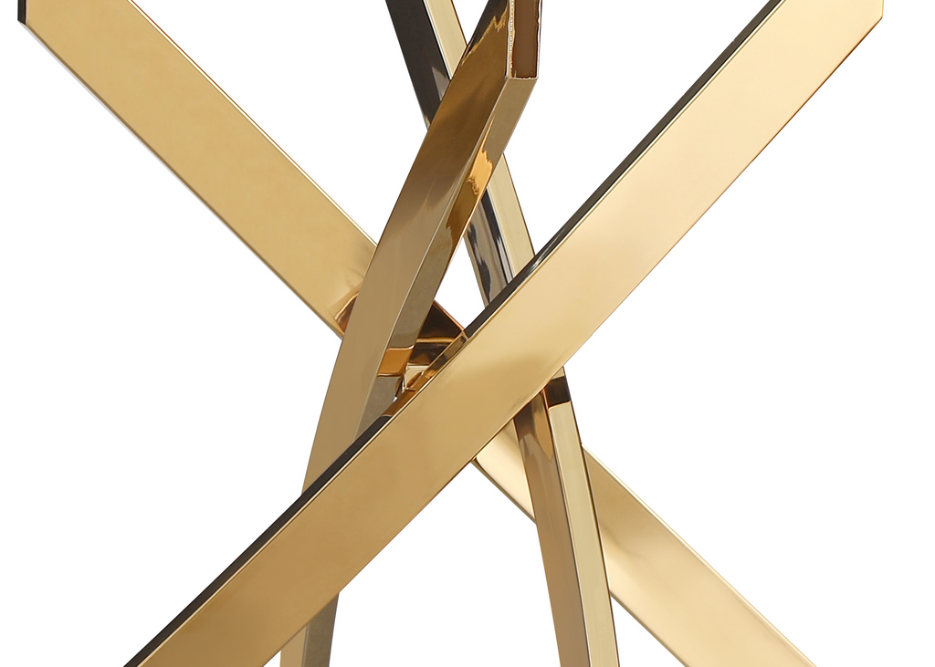 - ELEGANT CONTRAST DESIGN - GOLD & SILVER Arezzo table features a luxury gold chrome nest-style base, beautifully offset by Ravello chairs with sleek silver chrome legs – a sophisticated blend of tones for upscale interiors.