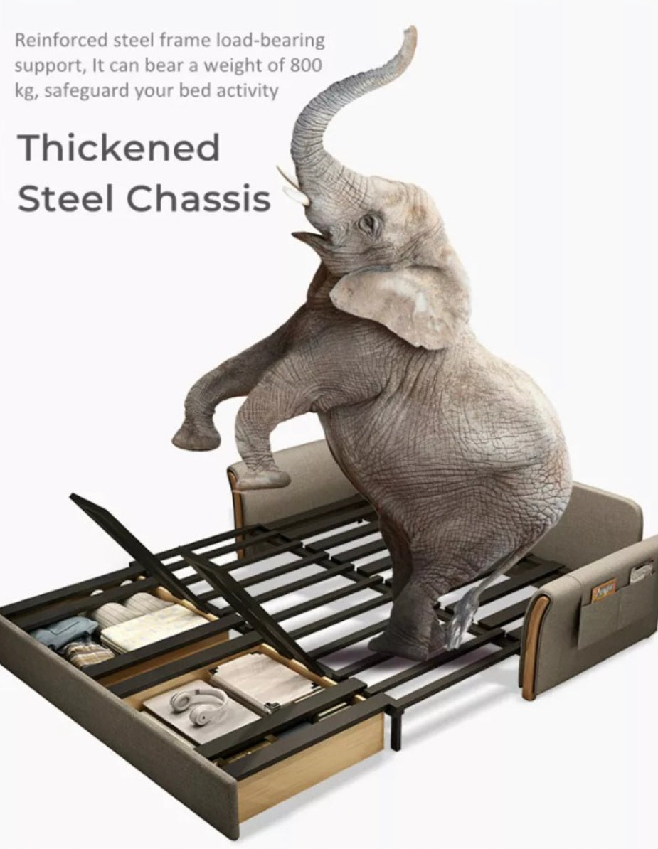 【DURABLE FRAME AND SOLID ARMRESTS】Convertible Sofabed is Built for durability with a solid, non-rust metal frame and reinforced steel chassis base. Padded armrests ensure added comfort. In weight bearing capacity, this sofa bed supports up to 500kg, making it perfect for everyday use.