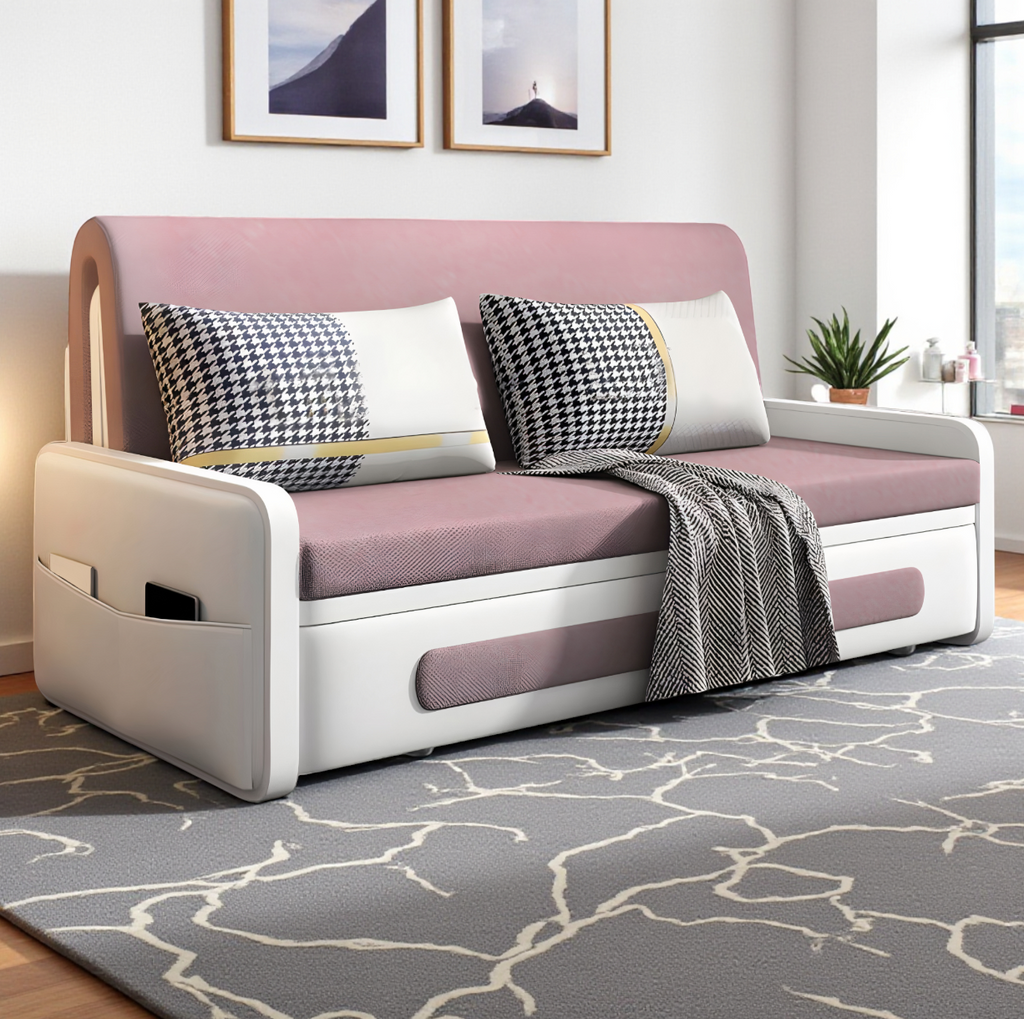 UNICORN FURNITURE Convertible Sleeper Sofa Bed Modern Reclining Foldable Bed Pull Out Sofa Bed With Storage Space Saving Multifunctional Sofabed (Pink & White)